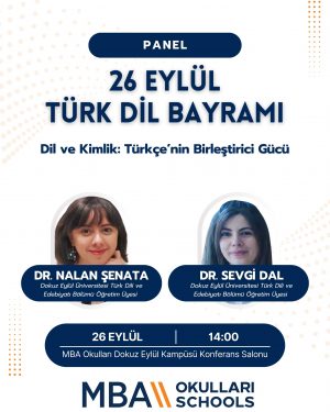 26 Eylül 2025 Cuma günü Bölümümüz Öğretim Üyelerinden Dr. Öğr. Üyesi Nalan ŞENATA ile Dr. Öğr. Üyesi Sevgi DAL, MBA Okulları’nın Türk Dil Bayramı münasebetiyle düzenlemiş oldukları panele konuşmacı olarak katılım sağlamışlardır. Yayınlanma Tarihi: 26-09-2025